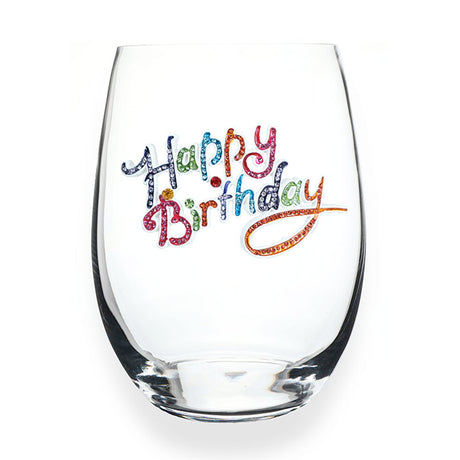 "Happy Birthday" Jeweled Stemless Wine Glass