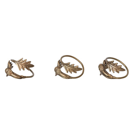 2" Round x 2-1/4"H Brass Leaves & Acorn Napkin Ring, Antique Finish