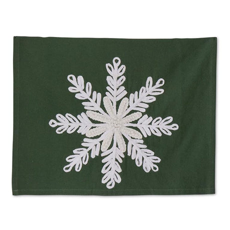 28 Inch Green Cotton Guest Towel w/White Snowflake Applique