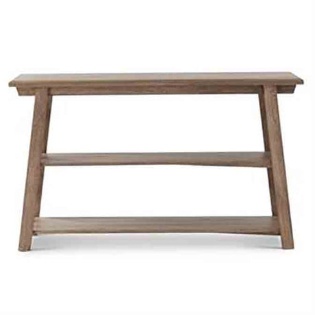 54 Inch Gray Washed Mango Wood 3 Shelf Console Table