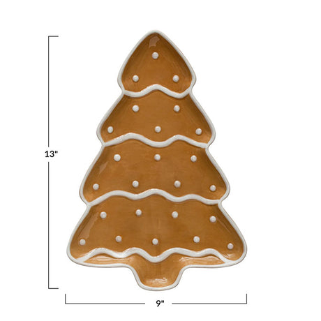 $18.00Unit price /Unavailable13"L x 9"W Hand-Painted Ceramic Gingerbread Tree Shaped Platter, Brown & White