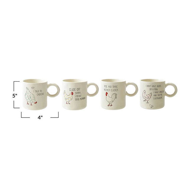 15 oz. Stoneware Mug w/ Chicken & Saying, 4 Styles