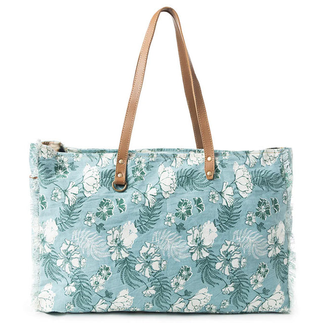 Invest in this beautifully printed handbag with leather straps. Stuff it with all essentials and carry it with ease. Perfect for picnics, yoga sessions, and girls' day out!