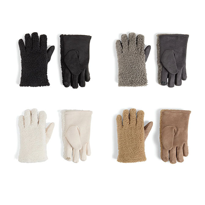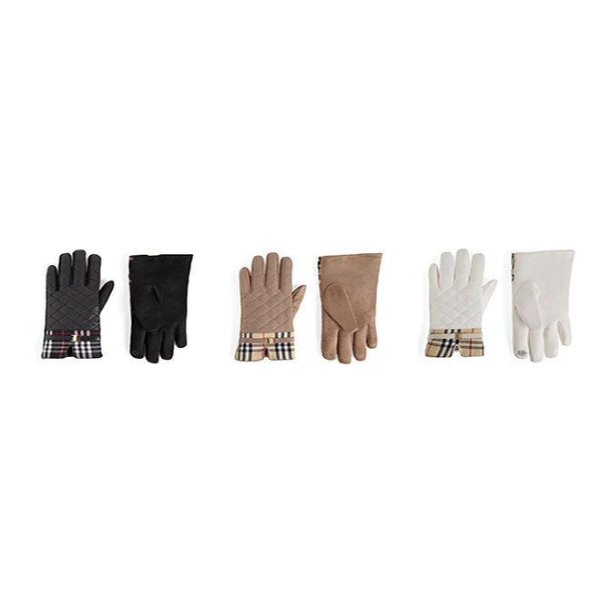 Belted Fur Cuff Plaid Touchscreen Gloves