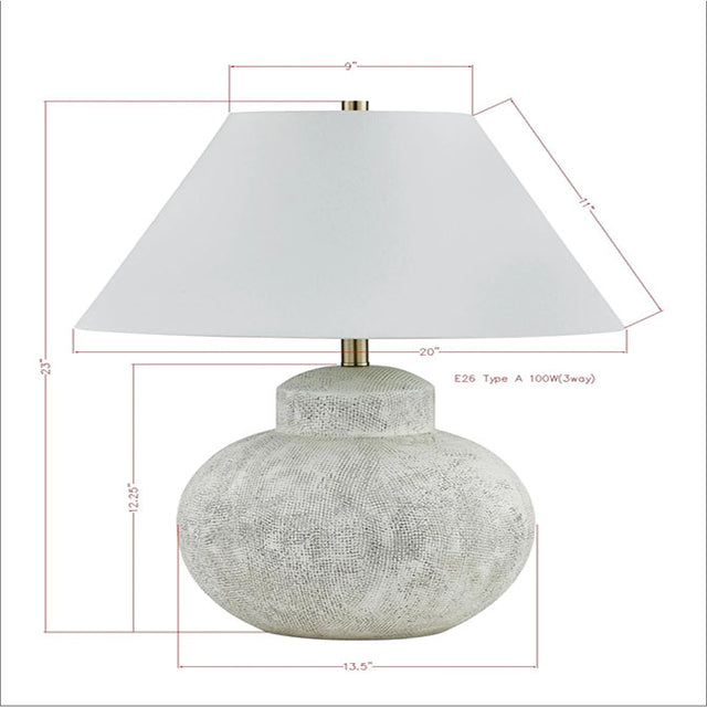 Temple's distinctive shape and texture make it a standout in any setting, while its neutral white with grey undertones adds a serene aesthetic. This contemporary lamp has an abundance of depth, texture, and high-end style. Complemented by gold hardware and an empire shade, Temple will quickly become your favorite piece.