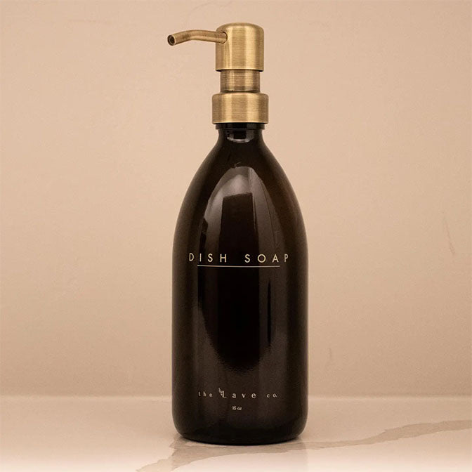 Amber Glass Dish Soap Bottle 16 oz — Elegant Gold Dispenser, Refillable Luxury Kitchen Soap Bottle | The Lavé Co. Where timeless design meets everyday ritual. This 16 oz amber glass dish soap bottle by the Lavé co. brings warmth, sophistication, and function to your kitchen. Each vessel is thoughtfully crafted to elevate your countertop with subtle luxury — designed to be refilled, reused, and cherished for years to come. The deep amber hue protects your soap from UV light, while the brushed gold metal pump adds a refined touch that complements any modern, minimalist, or neutral home. Perfect for dish soap or hand soap — this bottle is both sustainable and beautiful, making the ordinary feel intentional. Pair with our Hand Wash bottles for a cohesive, spa-inspired look. Ideal for kitchens, bathrooms, or gifting to someone who values thoughtful, sustainable design.