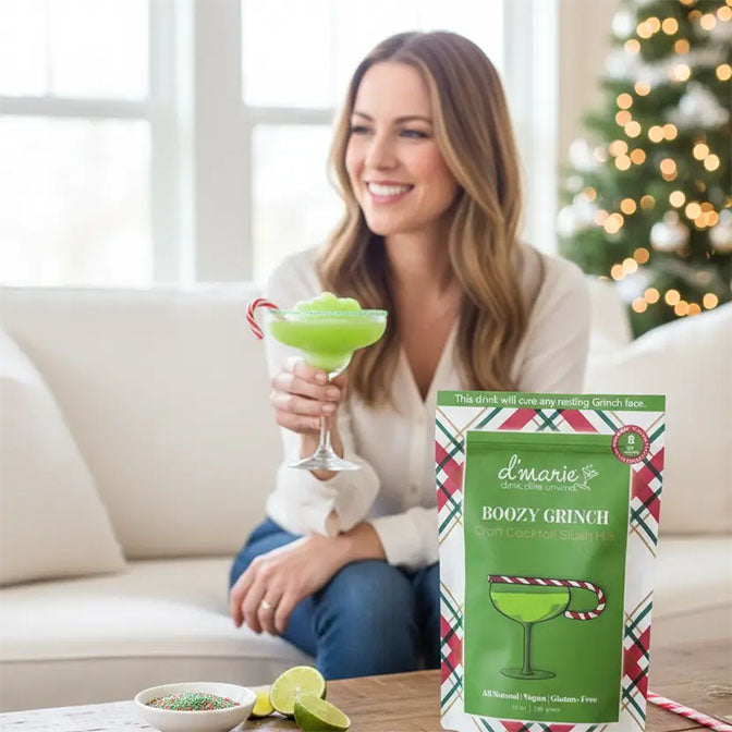 Our Boozy Grinch Slush Mix is made with real Lime and Lemon! Just Mix, Freeze, and Pour! Directions are below * 100% All Natural Ingredients, Vegan & Gluten-Free * Each Pouch makes eight 8 oz glasses * Dry mix is good for two years * Once frozen, product is good in freeze for up to 1 year * Slush times can vary based on freezer settings and the percentage of alcohol being used Needs: 1.5 Cups Vodka 2 Cups Lemon Lime Soda 1 Cup Pineapple Juice 1.5 Cups Water