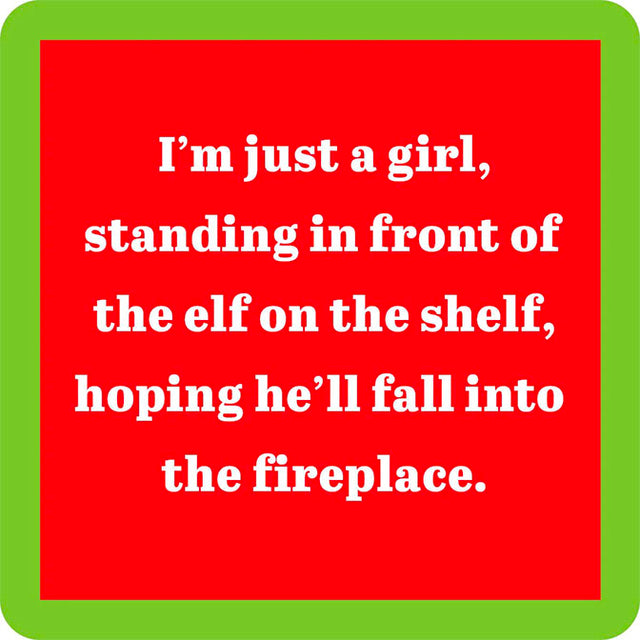 I'm just a girl, standing in front of the elf in the shelf hoping he'll fall into the fireplace