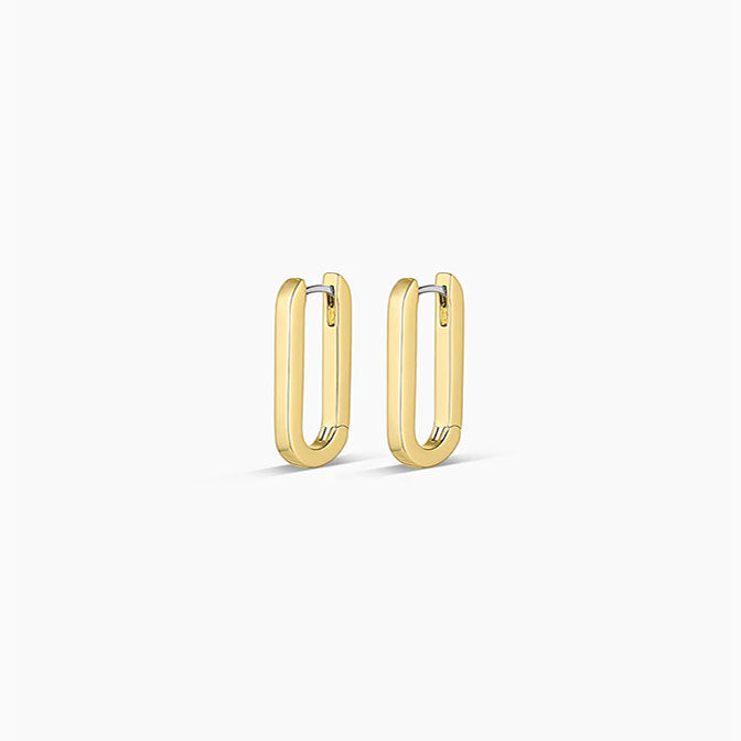 These huggie earrings are the perfect addition to any ear stack, with their paper clip design and gold-plated finish adding a fun touch to your look.