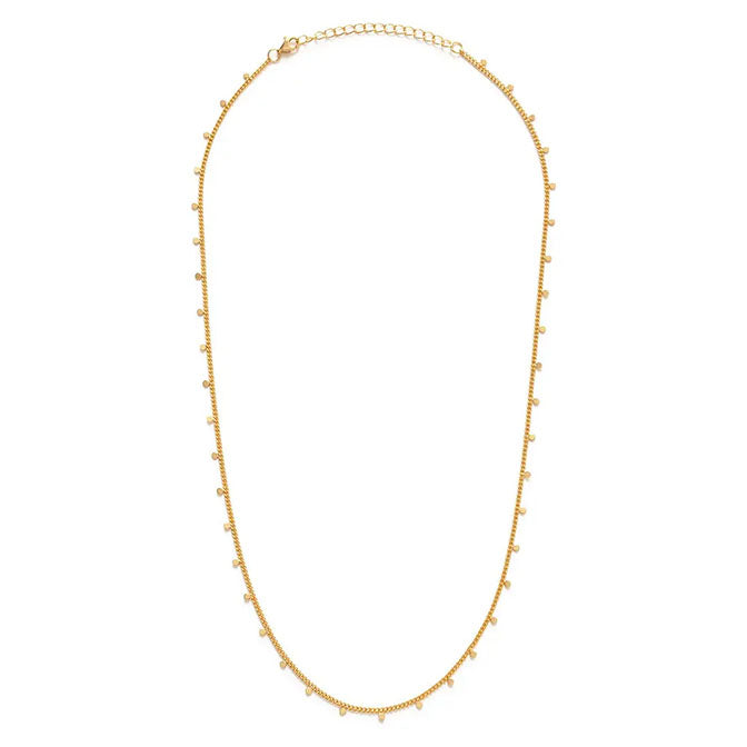 This unique chain necklace is perfect for layering. It measures 18" with a 2" extender. Made of 14k gold plated brass + coated to resist tarnsish and create a hypoallergenic surface.