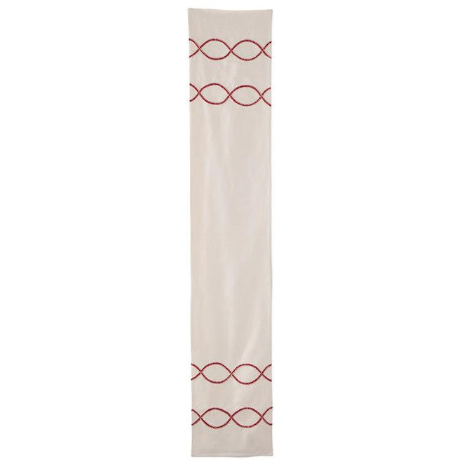 72 Inch Cream Table Runner w/Red and Cream Braided patter
