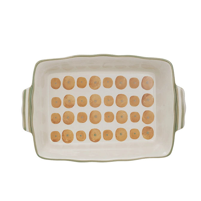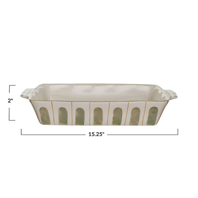 3 Quart Hand-Painted Stoneware Baking Dish w/ Plaid Pattern
