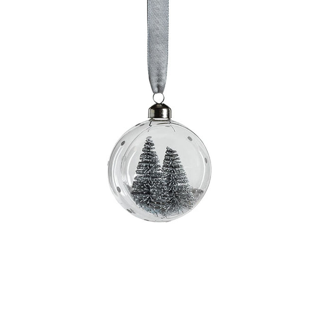 4 Inch Clear Glass Ornament w/ Pine Tree-Silver is backordered and will ship as soon as it is back in stock.