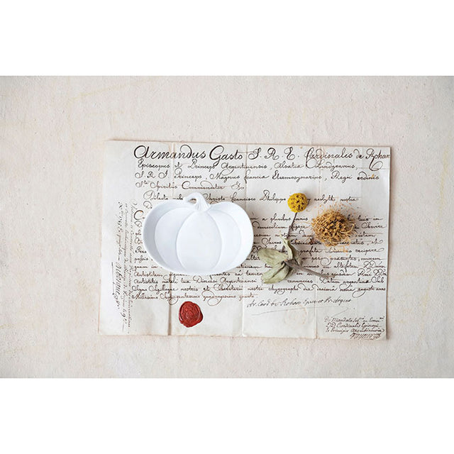 5"L x 3-1/4"W Stoneware Pumpkin Shaped Dish, White