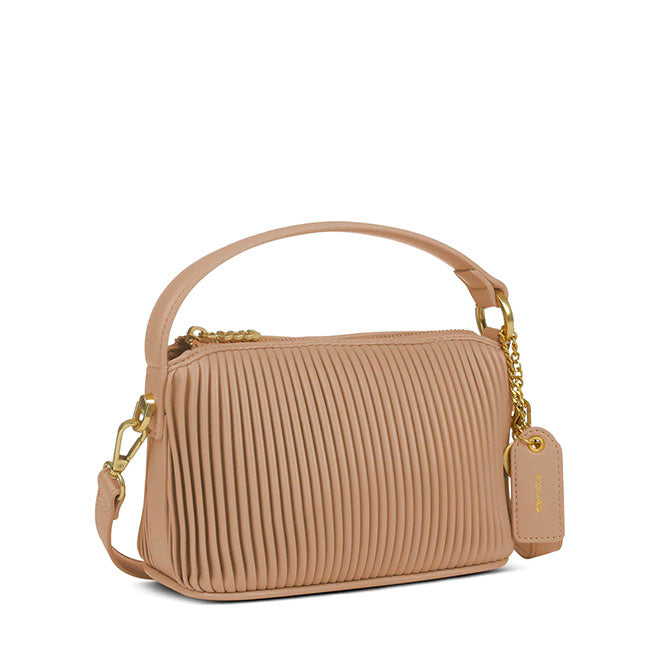 This cute bag is irresistably cute and will get you a ton of compliments. It's one of the hottest selling bags in the collection for a reason - it's got the looks, and the versatility. It's the little black bag that you need in your life. You can tote it on your arm, wear it as a crossbody, or a shoulder bag, however you want to wear it, you will look extra cute. But don't let the small size fool you, you could fit all your necessities in there like your phone, keys, lipstick, cards and cash, and a bit more. Wear it with your favourite little black dress to complete the look, or wear it as a crossbody with a tee and jeans to look effortlessly chic. This bag can be dressed up or down depending on your mood. The exterior of the bag is made with recycled vegan leather that is made from recycled plastic bottles, and our lining is created from a durable fabric that is also created from recycled plastic bottles, because sustainability matters, a lot.
