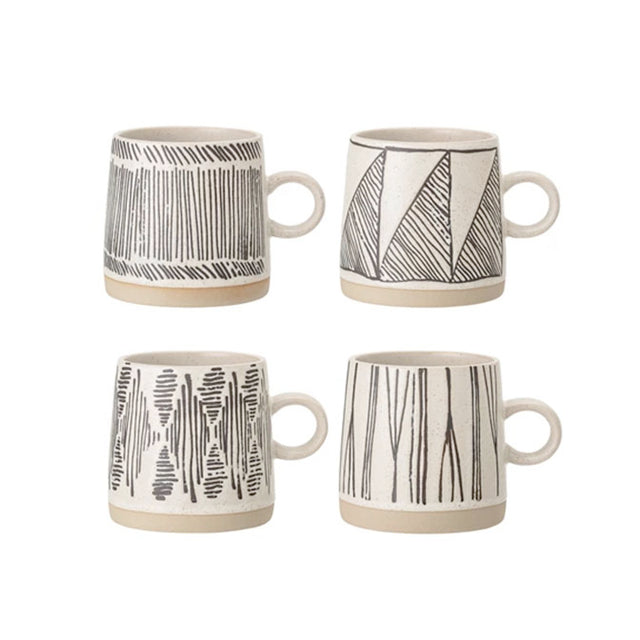 Embossed Stoneware Geometric Mug - Lines is backordered and will ship as soon as it is back in stock.