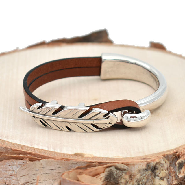 Feather Half Cuff Brown Leather Bracelet - Small 7" is backordered and will ship as soon as it is back in stock.