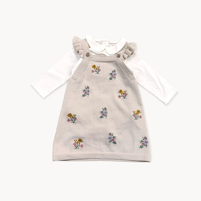 Floral Embroidered Tunic Baby Knit Dress Set (Organic)