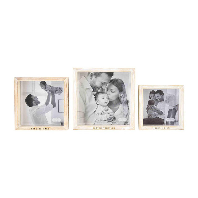 Nested 4" x 4", 5" x 5" and 6" x 6" engraved wood frames.