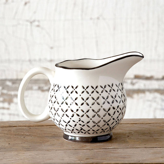 With its classic black and ivory combination and folk-style traditional artisan motif, this hand stamped creamer is as functional as it is beautiful. Use with its other coordinating Norden pieces in the collection to complete the look. Variations and imperfections in the design may occur due to its handcrafted nature.