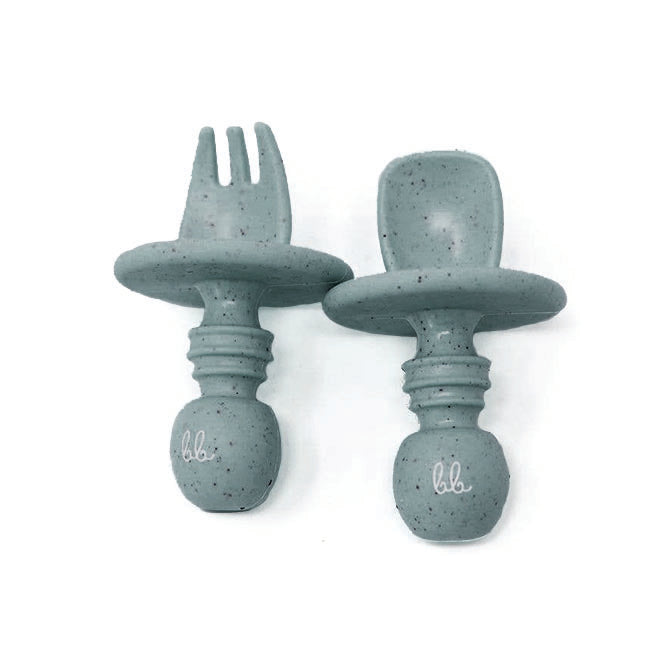 The silitensil set includes both a fork and spoon set for babies between 6 and 14 months. Our idea was to help parents be able to provide a teether and utensil for baby as they begin the journey to fine motor skills. Baby will learn to hold a fork and spoon but also give them the ability to teether and chew from our baby safe utensils. These are designed for soft pureed food items. The idea is for baby to be able to avoid hurting themselves but also learn the sensation of how to hold a fork and spoon. Our set also has a design of a plate on each utensil to avoid baby from putting the utensil too far deep in their mouth and avoid gagging.
