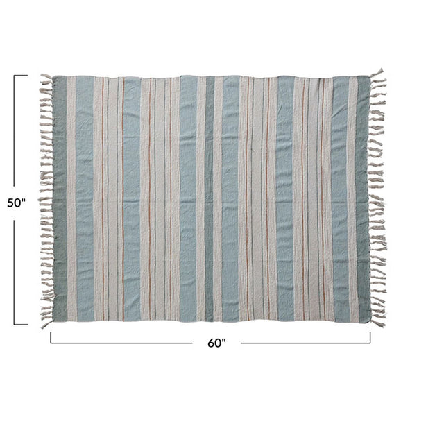Woven Cotton Throw w/ Stripes & Fringe
